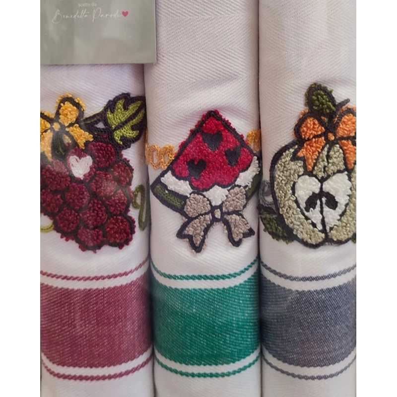 - Strofinacci cotone spigato ricamato 3 pezzi Spiga uva